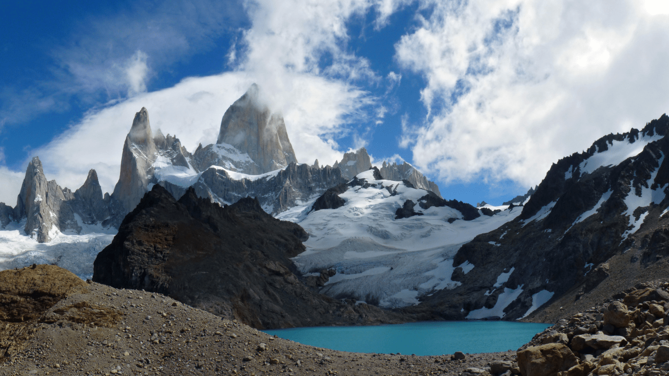 El Chaltén is a town in Los Glaciares National Park, in the Argentine province of Santa Cruz. It is an access road to the trails that surround the peaks of Cerro Torre and Mount Fitz Roy to the northwest. Near Fitz Roy there is a path that reaches the Laguna de los Tres viewpoint. Just northwest of the village is the Capri lagoon with views of the mountains.